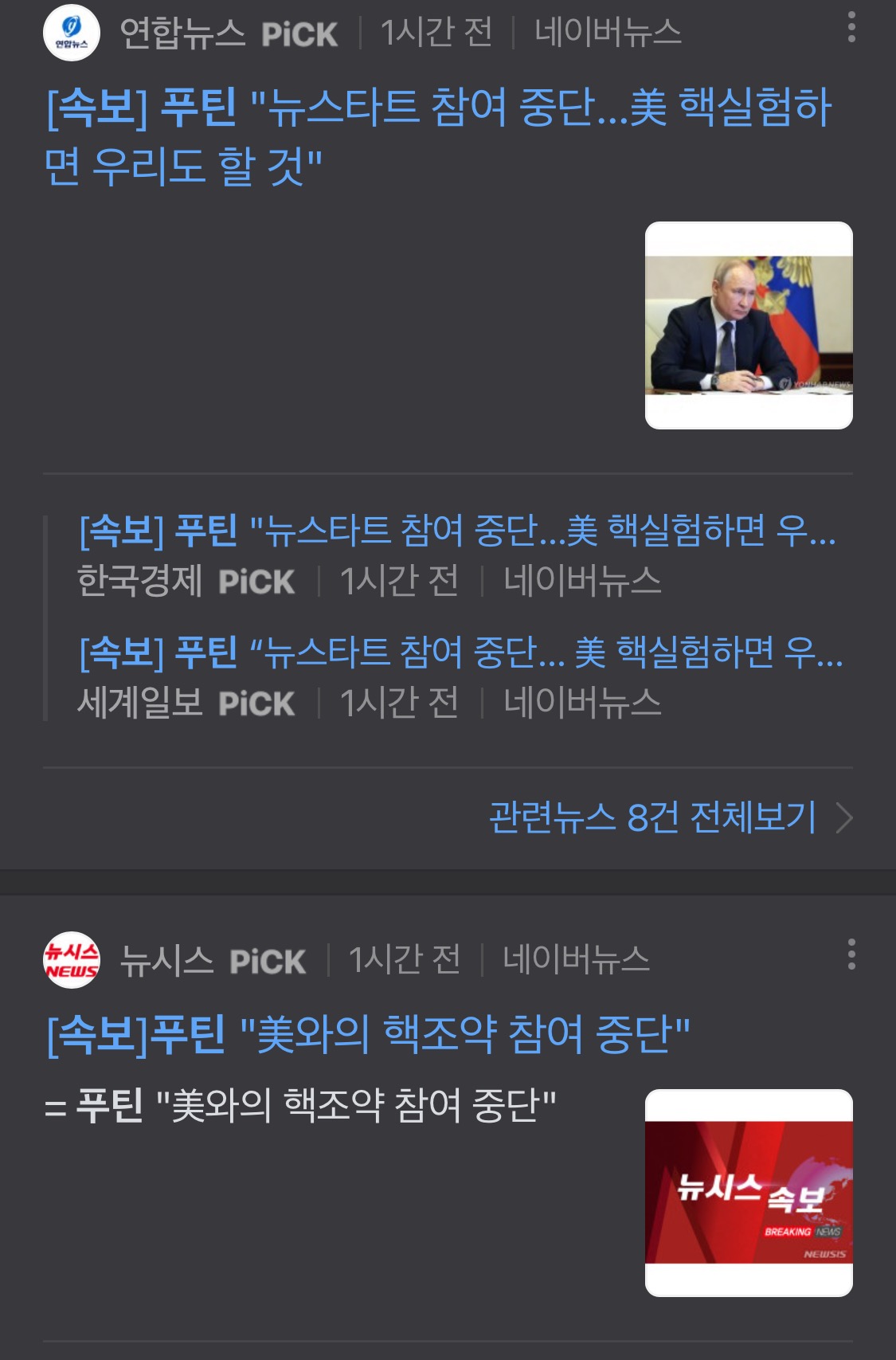 이번 푸틴 대통령의 신전략무기감축협정 뉴 스타트 중단은 제3차 세계대전 핵전쟁의 서막이 되는 것은 아닌지 무척 걱정이 됩니다.