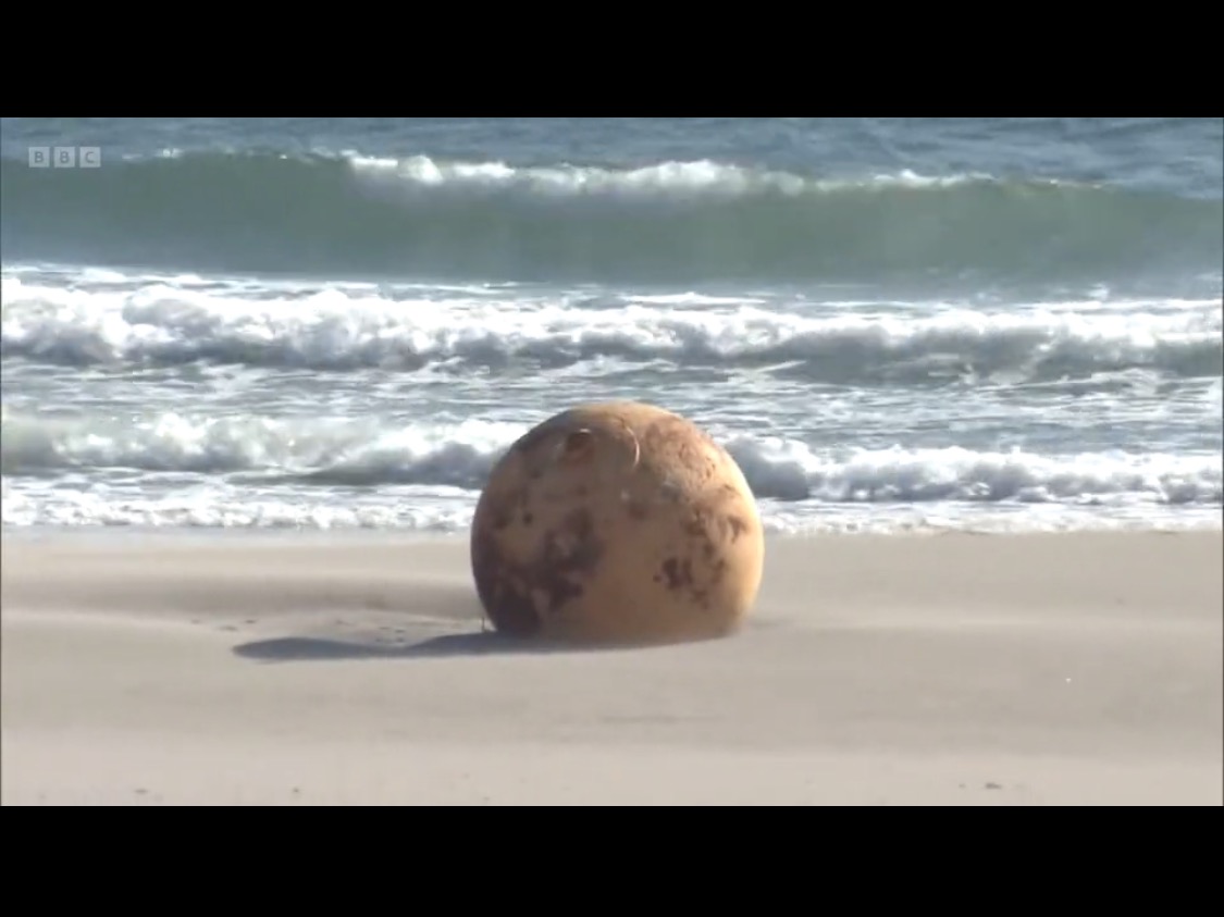 최근 일본 하마마츠 해안에서 의문의 수수께끼 거대한 공이 발견되었습니다