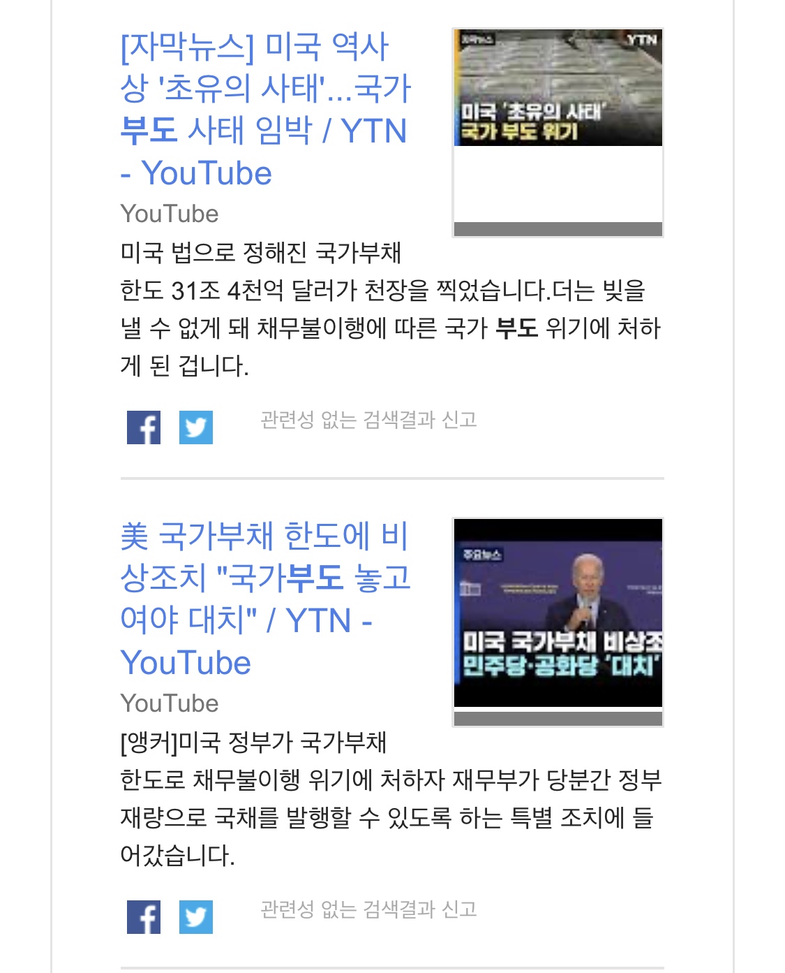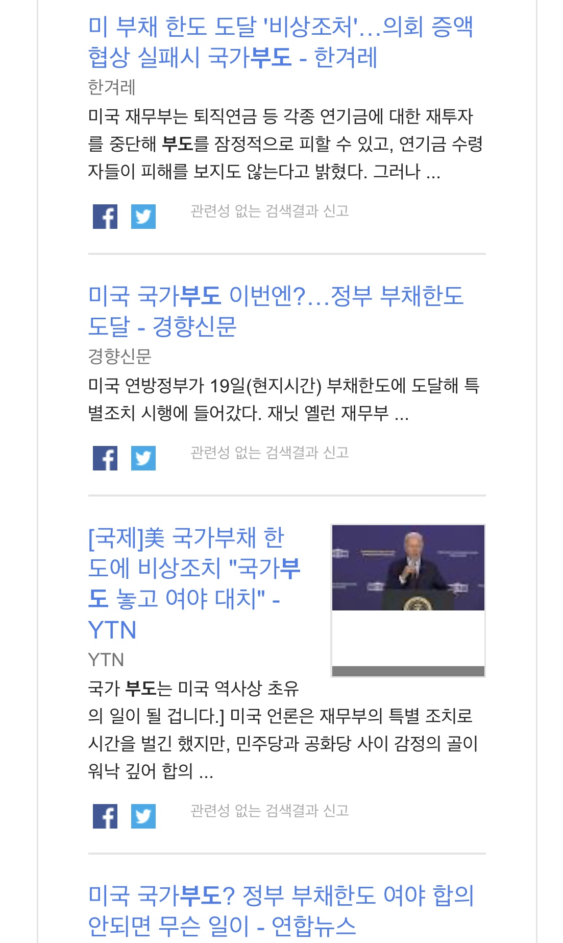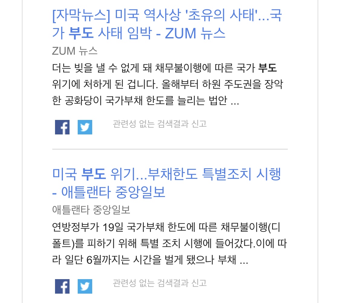 오늘 구글 알리미에서 미국 부도 위기가 키워드로 잡혔습니다.