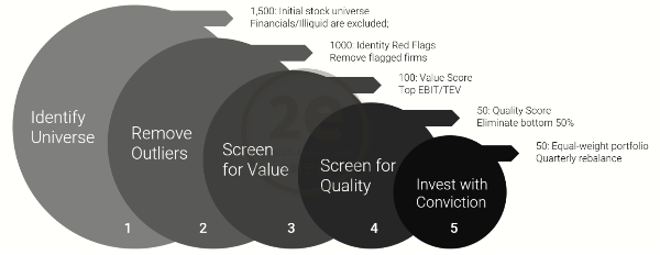 퀀트가치투자전략(Quantitative value investing)의 방법과 절차는 다음과 같습니다.