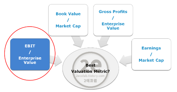 Earnings Yield | 기업의 순이익을 주가로 나눈 비율을 계산하여 저평가된 기업을 찾는 데 사용됨 |