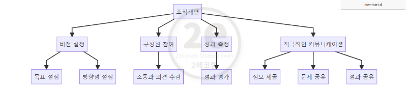 조직 개편을 성공적으로 수행하기 위해서는 적극적인 리더십이 필요합니다. 리더는 비전 설정, 구성원 참여, 성과 측정 등 모든 과정에서 중요한 역할을 합니다.