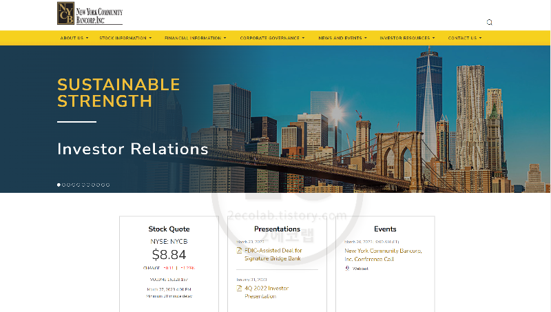 그로부터 약 일주일 정도 지나서 뉴욕커뮤니티뱅코프(NYCB : New York Community Bancorp)의 자회사인 플래그스타은행이 시그니처은행을 인수하기로 결정한 것입니다.
