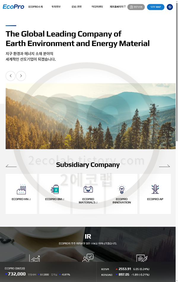 에코프로비엠과 에코프로에이치엔은 에코프로의 자회사로서 각각 2차전지 양극재와 환경오염 방지 관련 소재를 생산합니다. 에코프로 그룹은 2차전지 시장의 성장과 함께 최근 코스닥 시가총액 1위와 2위를 달리며 증시의 관심을 끌고 있습니다.