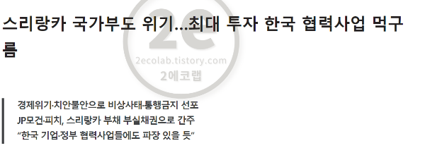 그런데 최근 스리랑카 국가부도 관련 충격 기사가 언론을 통해 공개되었습니다.