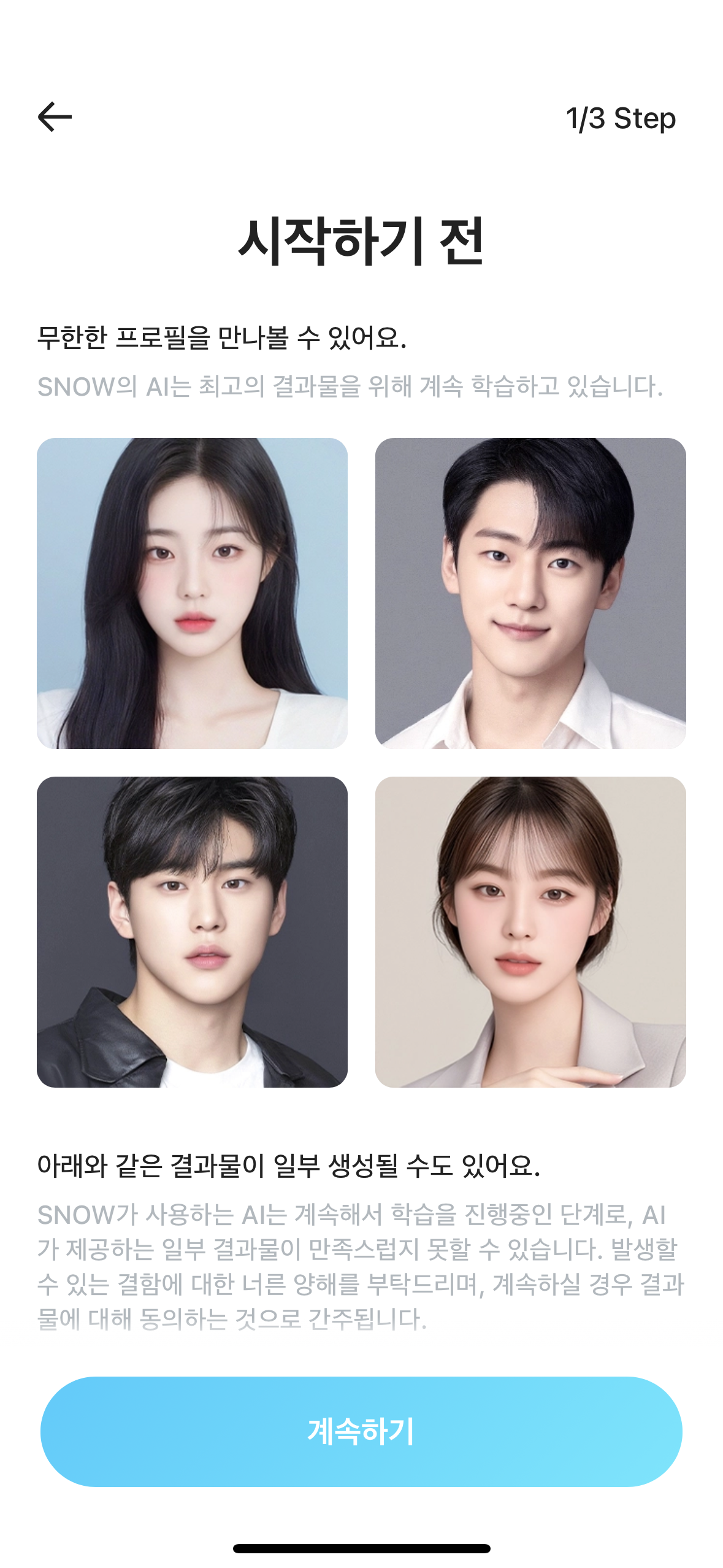 스노우 AI 프로필은 사용자의 얼굴 사진을 인공지능으로 분석하여 트렌디한 프로필 사진을 만들어주는 서비스입니다.