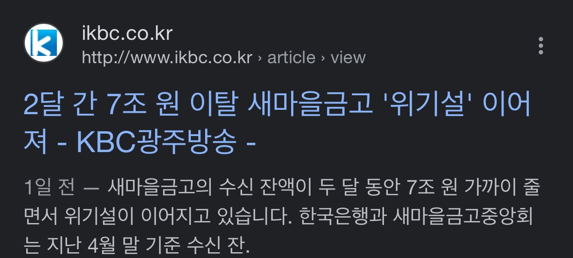 최근 두 달간 새마을금고에서 7조원 가까이 이탈되었다고 합니다.